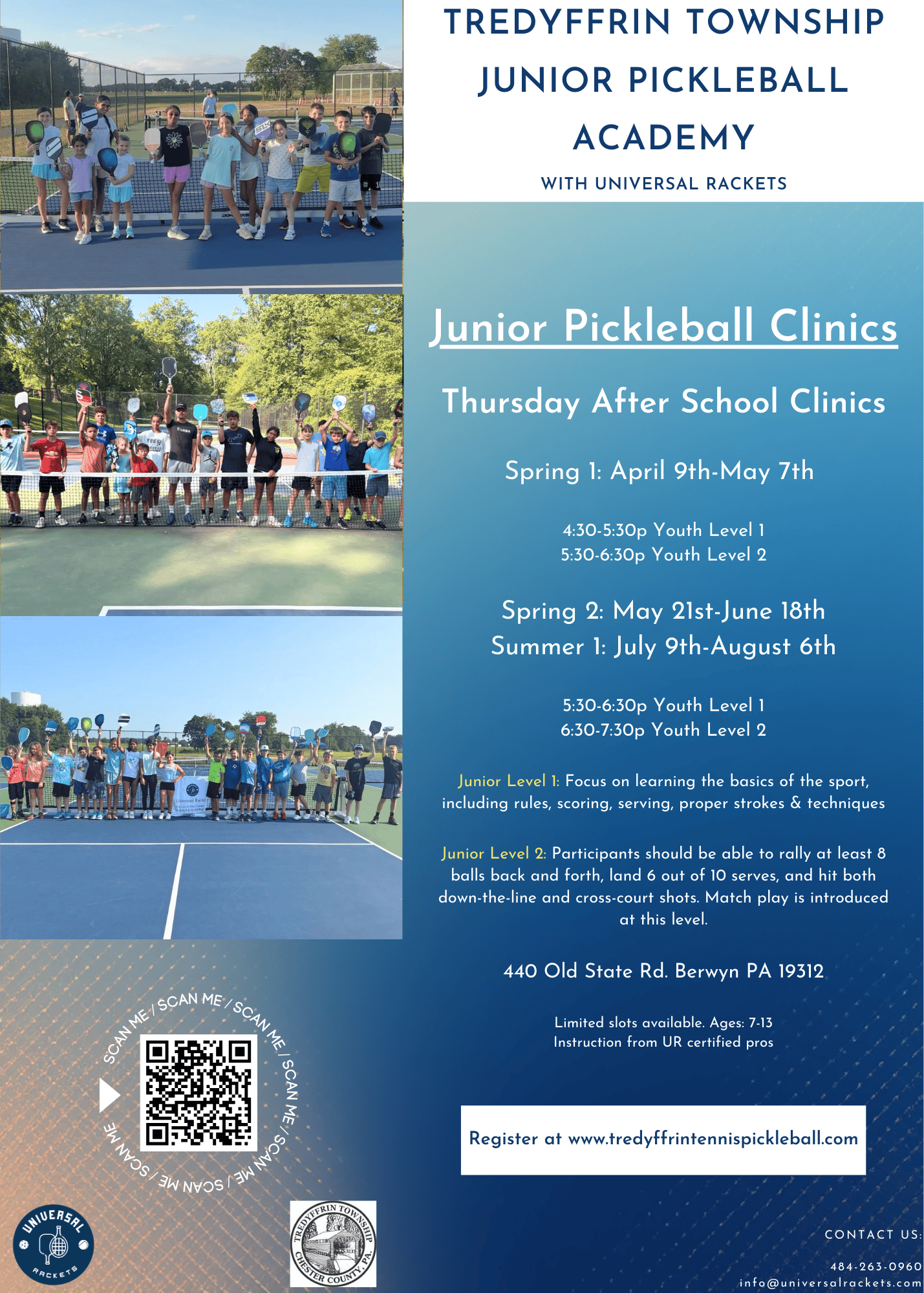 Spring 1: THURSDAY Junior Level 1 Pickleball Clinic 4:30-5:30p (April 9th-May 7th)